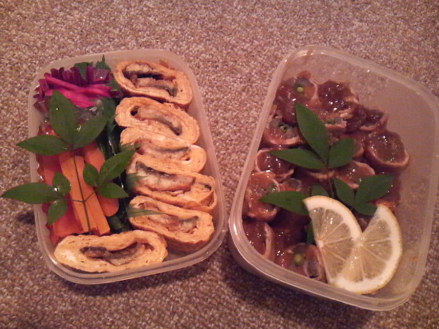 大好物の「玉子焼」「野菜の豚巻き」である!